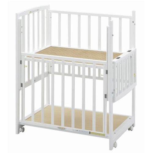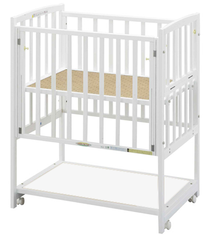 コンパクトサイズ&ハイタイプ&ツーオープンのベビーベッド! ベッドの前面と側面の2ヶ所が開閉できるので、とっても赤ちゃんのお世話がしやすいです。 【おすすめポイント1】 お部屋からお部屋への移動が出来るコンパクトサイズ! ベッドの幅が約70cmなのでお部屋のドアも楽に通れます。置き場所を取らないのでお部屋のスペースを有効につ かえます。日中はリビングで、夜は寝室で、といった使い方ができます。 【おすすめポイント2】 床板(寝台)の高さが床から約70cmの高さに調節できるハイタイプ! 出産後まもなくのママの体は赤ちゃんのお世話も大変です。 ハイタイプのベッドなら腰をかがめず楽な姿勢で赤ちゃんのお世話が出来ます。 【おすすめポイント3】 ベッドの前面と側面の2ケ所が開閉できる! 1ヶ所しか開閉できないものと比べると、おむつを替える時などにとても便利。またベッドを置く場所の選択肢も広がります。 【おすすめポイント4】 たっぷり&丈夫な収納スペース! 床下のスペースは広くて高さもあるので(間口約30cm)、紙おむつなどの赤ちゃんグッズをたっぷり収納できます。(床板上段のとき、約55cmの高さの物まで収納できます。) 丈夫なつくりにこだわり、耐加重約20kg!たっぷり荷物を載せても棚がたわむようなことはありません。 ッドの設置スペースが多少狭い場合でも2ヶ所の扉を活用できるので育児環境が作りやすいベッドです。 【おすすめポイント5】 4輪キャスターで移動ラクラク! 4輪キャスター付きで移動ラクラク、もちろん全てストッパー付なので安心です。 さらにヤマサキ独自の「ウレタン巻きキャスター」なので、フローリングに傷がつきにくく安心です。 ※横枠の開閉する枠は左右どちらにも組立可能です。 ★日本製、製品安全協会合格品 ●商品は新品になります。 ●送料区分:宅配不可商品(自社便集配のみのお取扱いとなります) ●自社便配送は組立無料、5,501円以上(税込)のお申込で往復送料無料(兵庫県南部・大阪市) レンタル商品のお届け・お引き取りについて ※こちらの商品は宅配便での発送はできませんのでご了承ください。